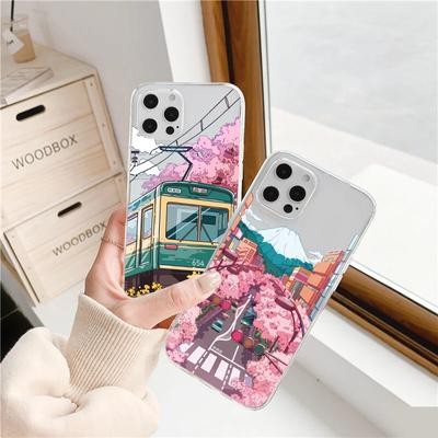 Японский эстетический прозрачный чехол Traint Moun Fuji для iPhone 14 13 12 11 Pro Max 8 7 Redmi 12C