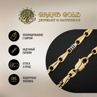 GRAND GOLD Цепь Фантазийного плетения из желтого золота с эмалью Золото 585 Размер 60 Ширина 5 Вес 6