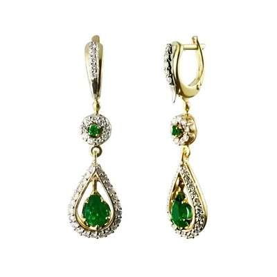 титульная страница > Ювелирные изделия > G.st. ЮВЕЛИРНЫЙ ЗАВОД ЗОЛОТОЙ СТАНДАРТ Серьги из желтого золота с натуральными изумрудами и бриллиан
