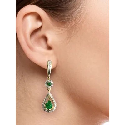 G.st. ЮВЕЛИРНЫЙ ЗАВОД ЗОЛОТОЙ СТАНДАРТ Серьги из желтого золота с натуральными изумрудами и бриллиан